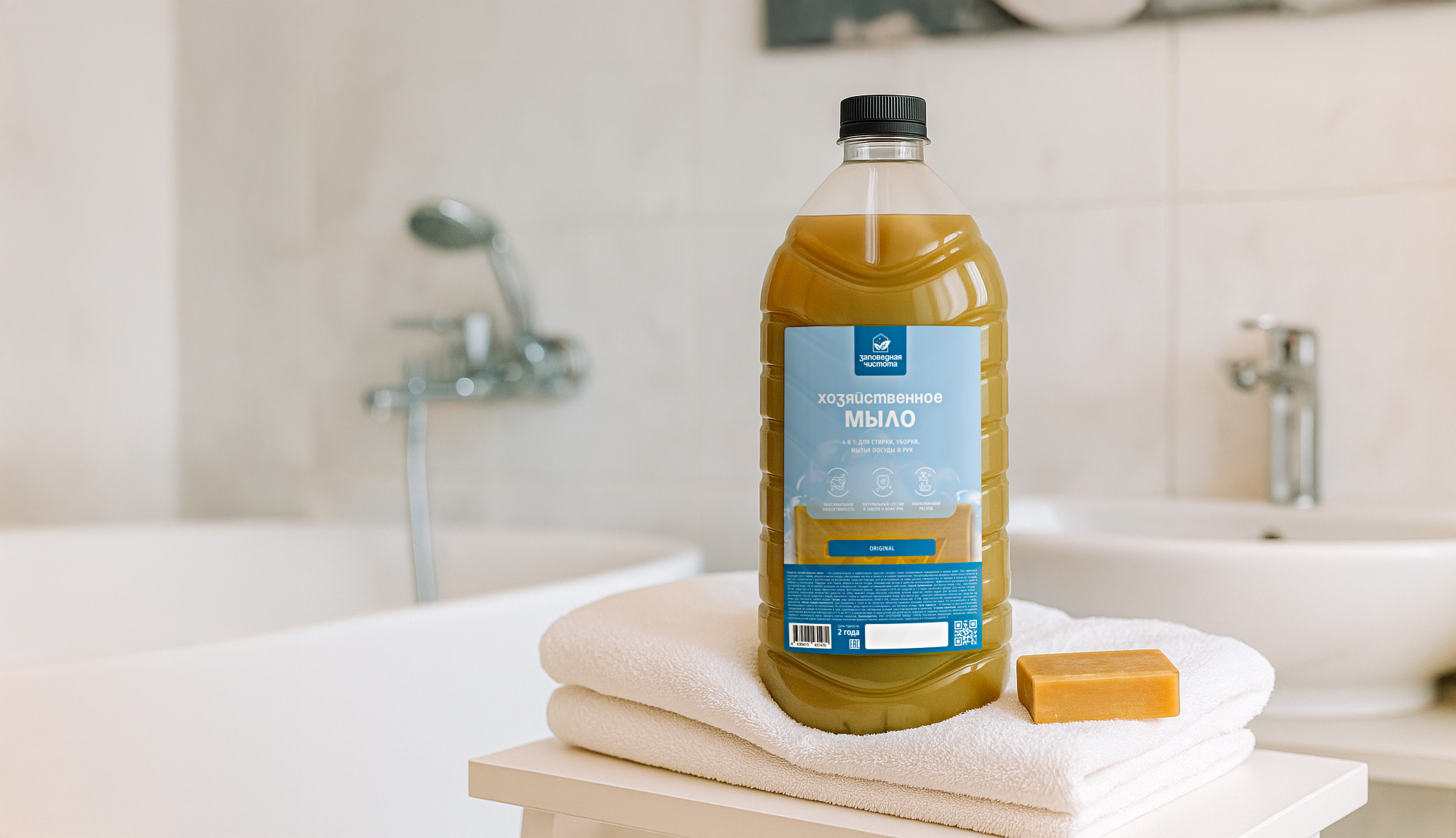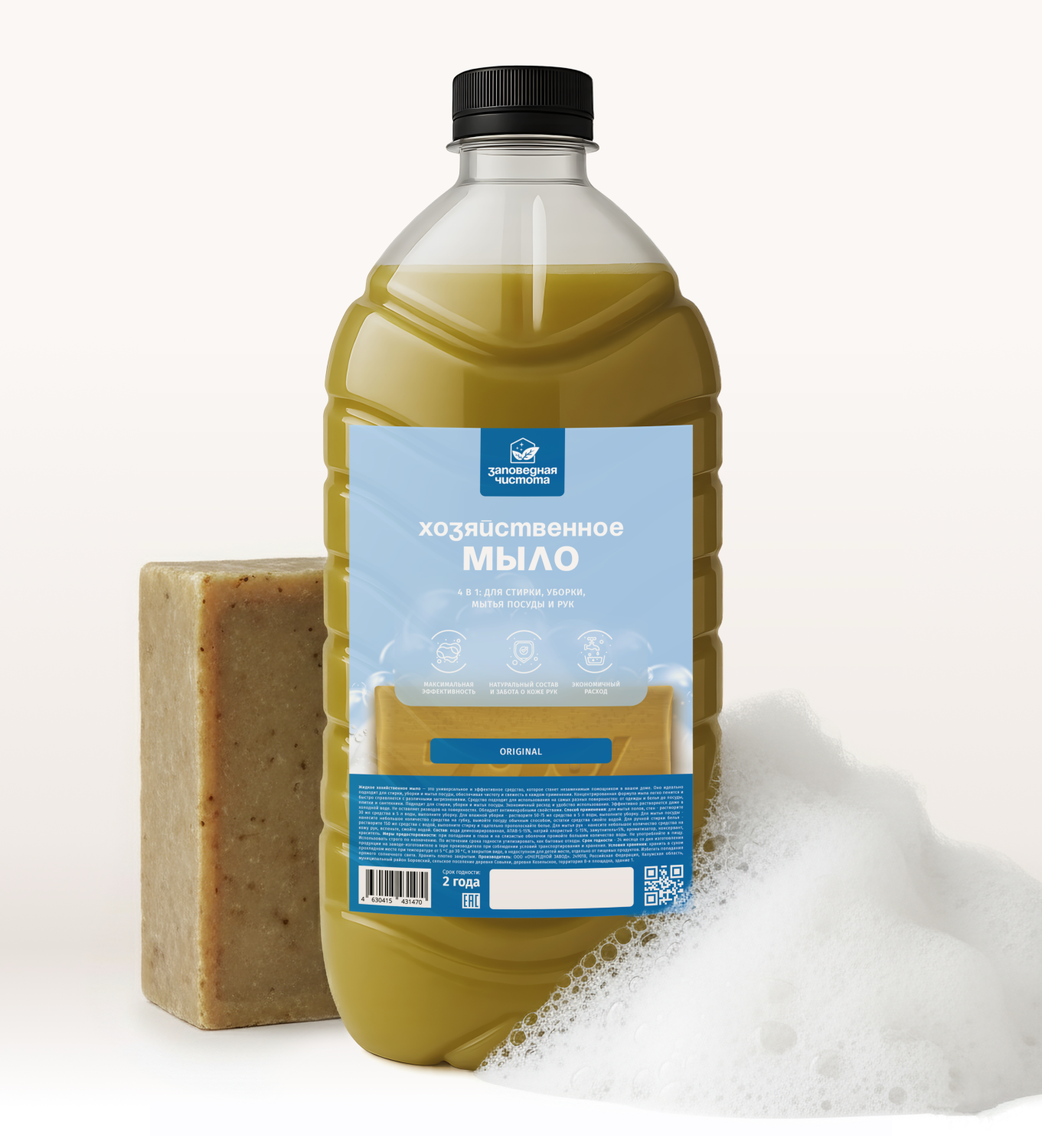 Концентрированная формула мыла легко пенится и быстро справляется с различными загрязнениями. Средство подходит для использования на самых разных поверхностях: от одежды и белья до посуды, плитки и сантехники.