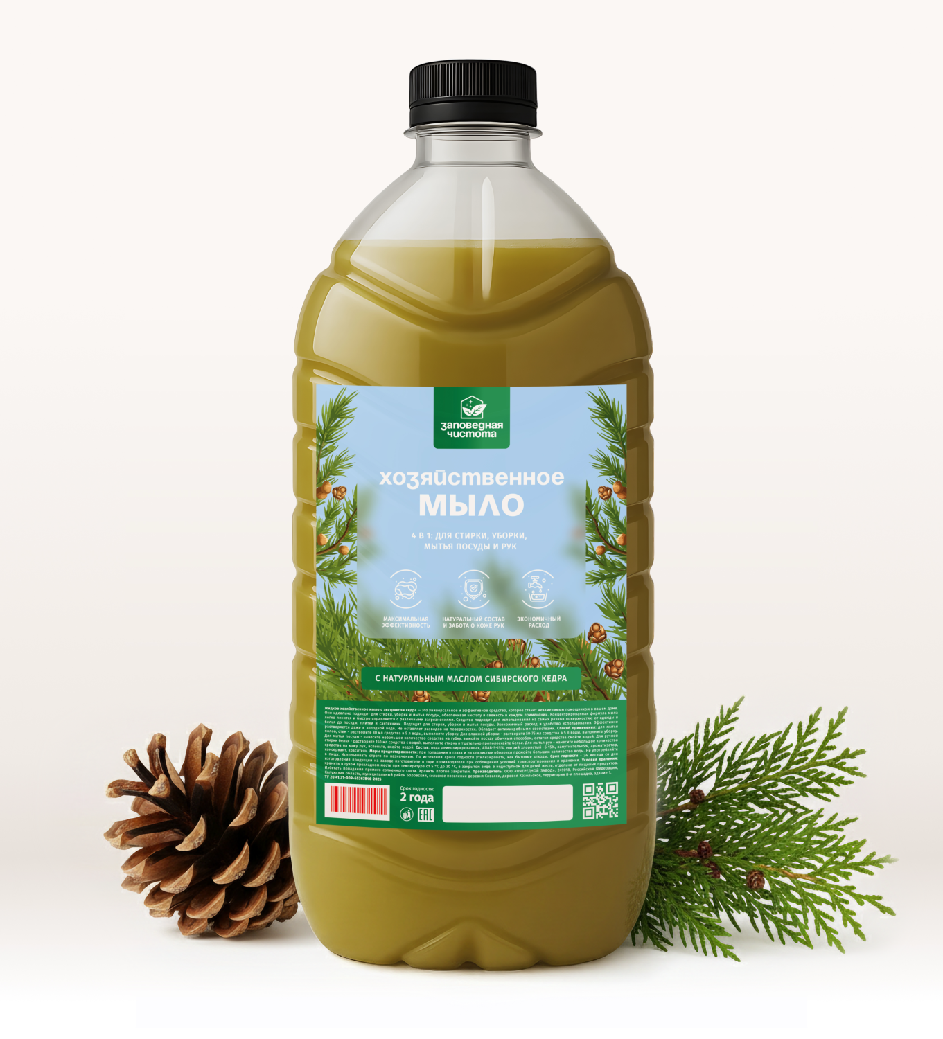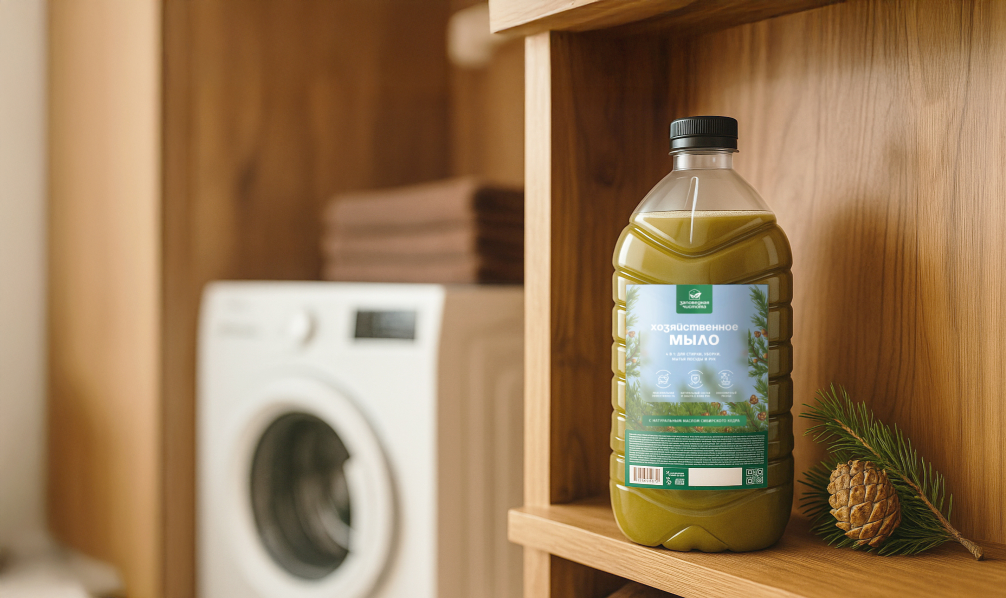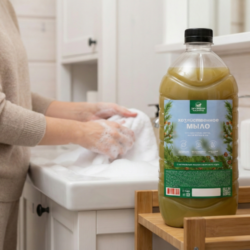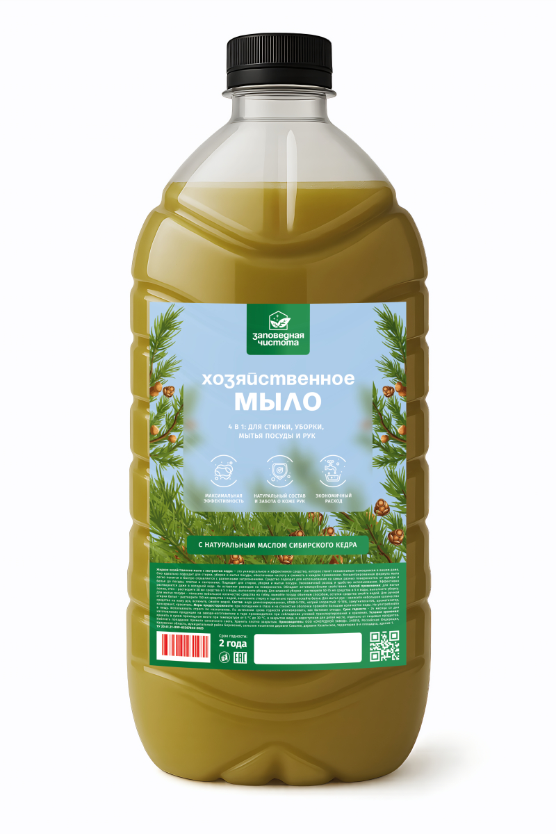 Мыло хозяйственное жидкое «Заповедная чистота» с экстрактом кедра 5л — дополнительное изображение, арт. OZ 06 101