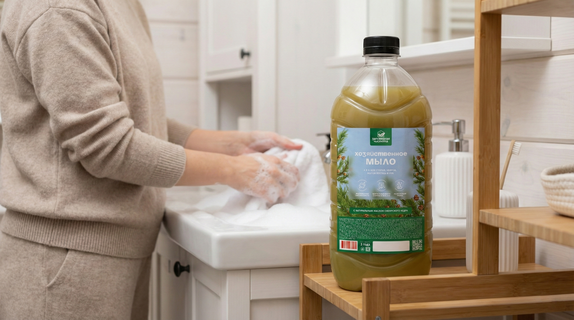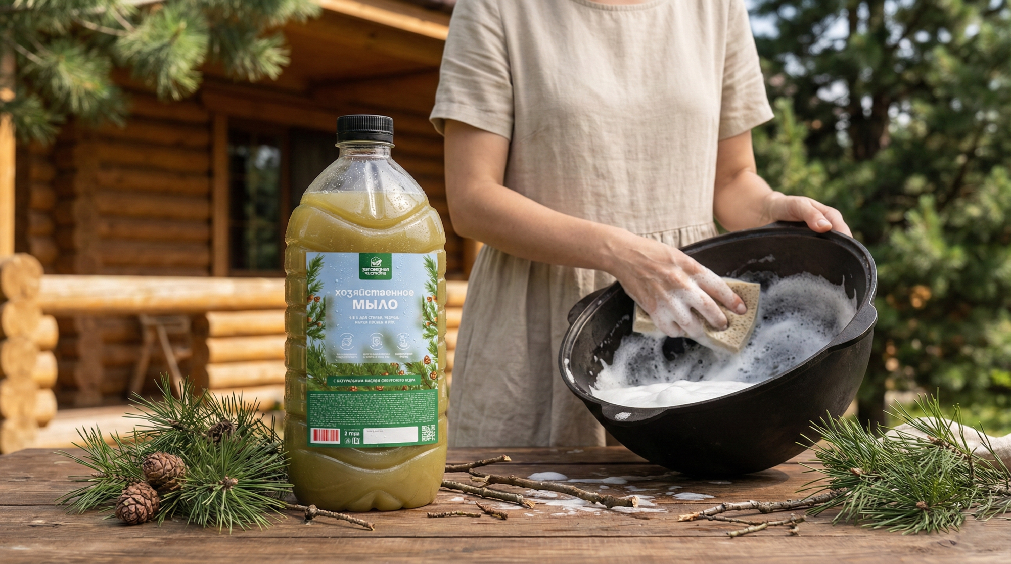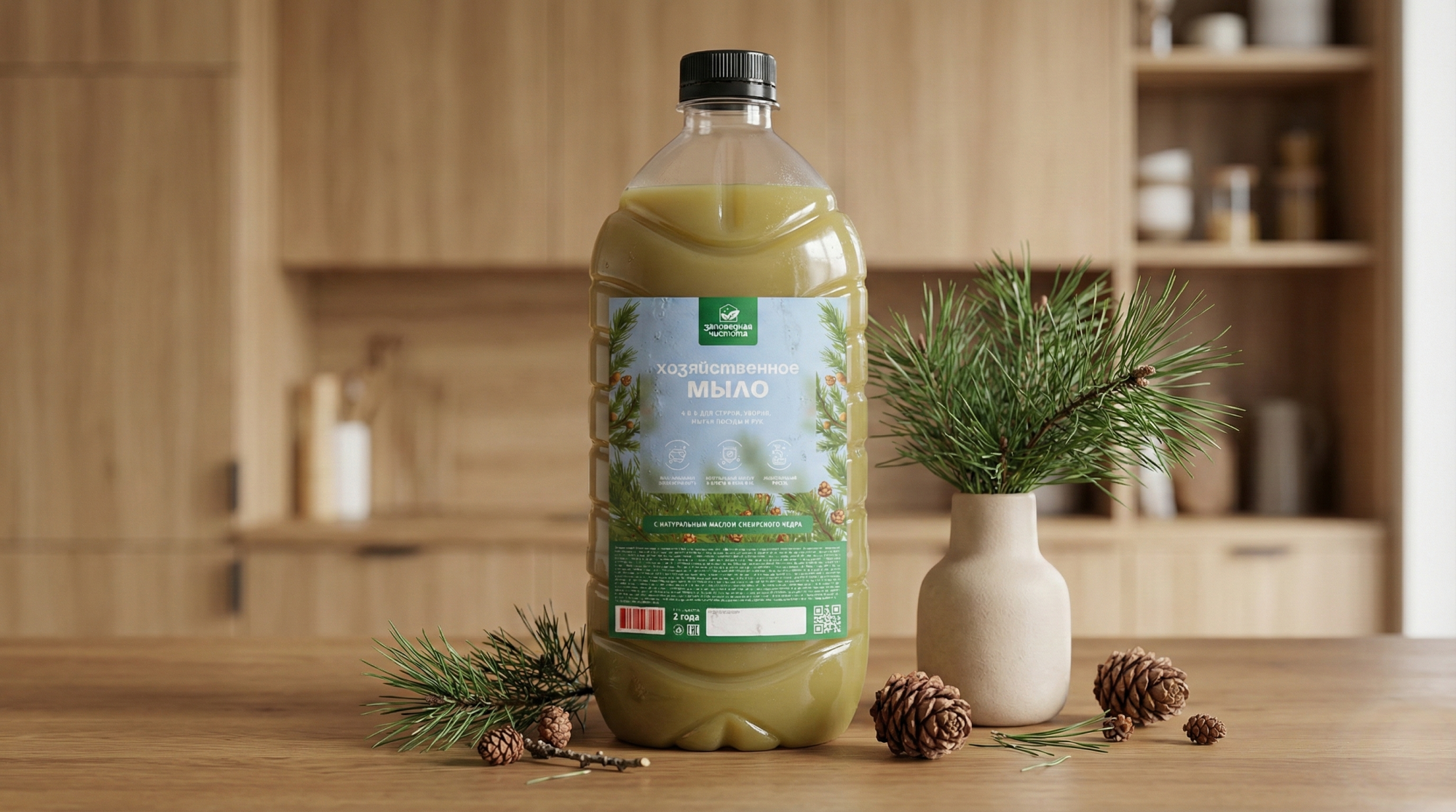 Мыло хозяйственное жидкое «Заповедная чистота» с экстрактом кедра 5л — дополнительное изображение, арт. OZ 06 101