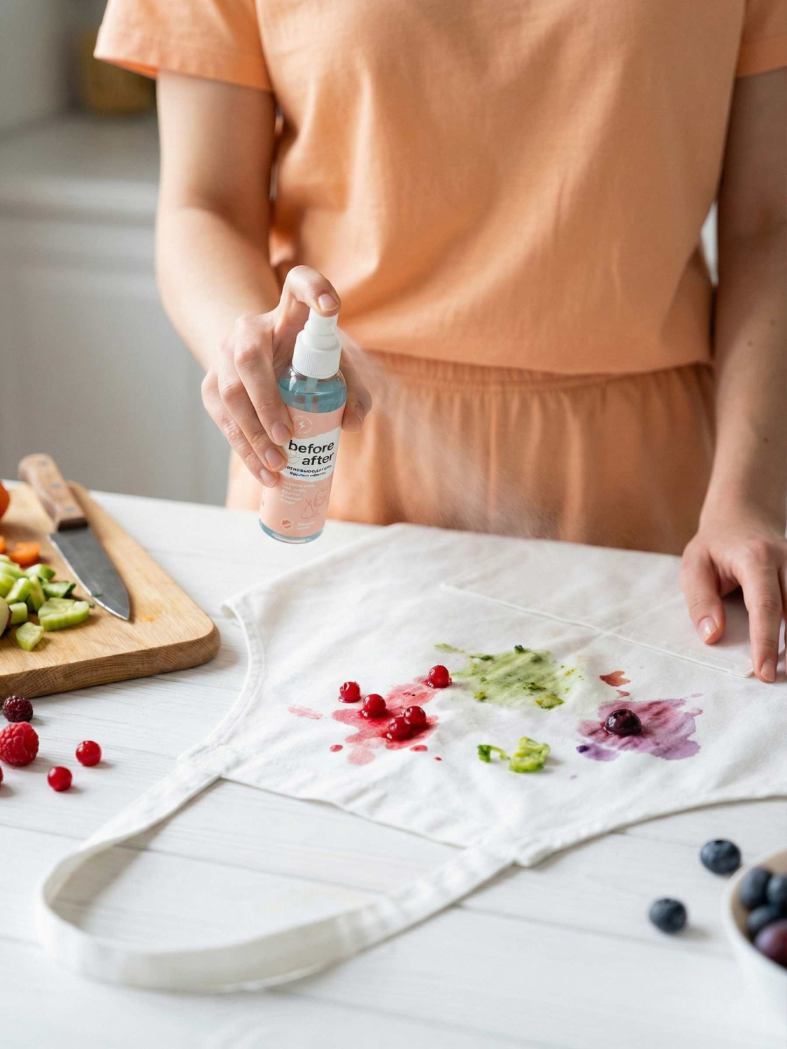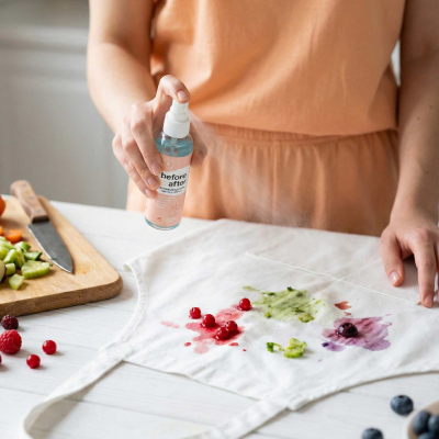 Распылите средство на загрязнённые участки ткани до её увлажнения. Выдержите 5-10 минут, при сильном загрязнении можно протереть мягкой чистой тканью или щеткой, и, не допуская высыхания ткани, постирать её как обычно, хорошо прополоскать