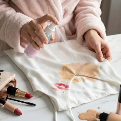 Распылите средство на загрязнённые участки ткани до её увлажнения. Выдержите 5-10 минут, при сильном загрязнении можно протереть мягкой чистой тканью или щеткой, и, не допуская высыхания ткани, постирать её как обычно, хорошо прополоскать