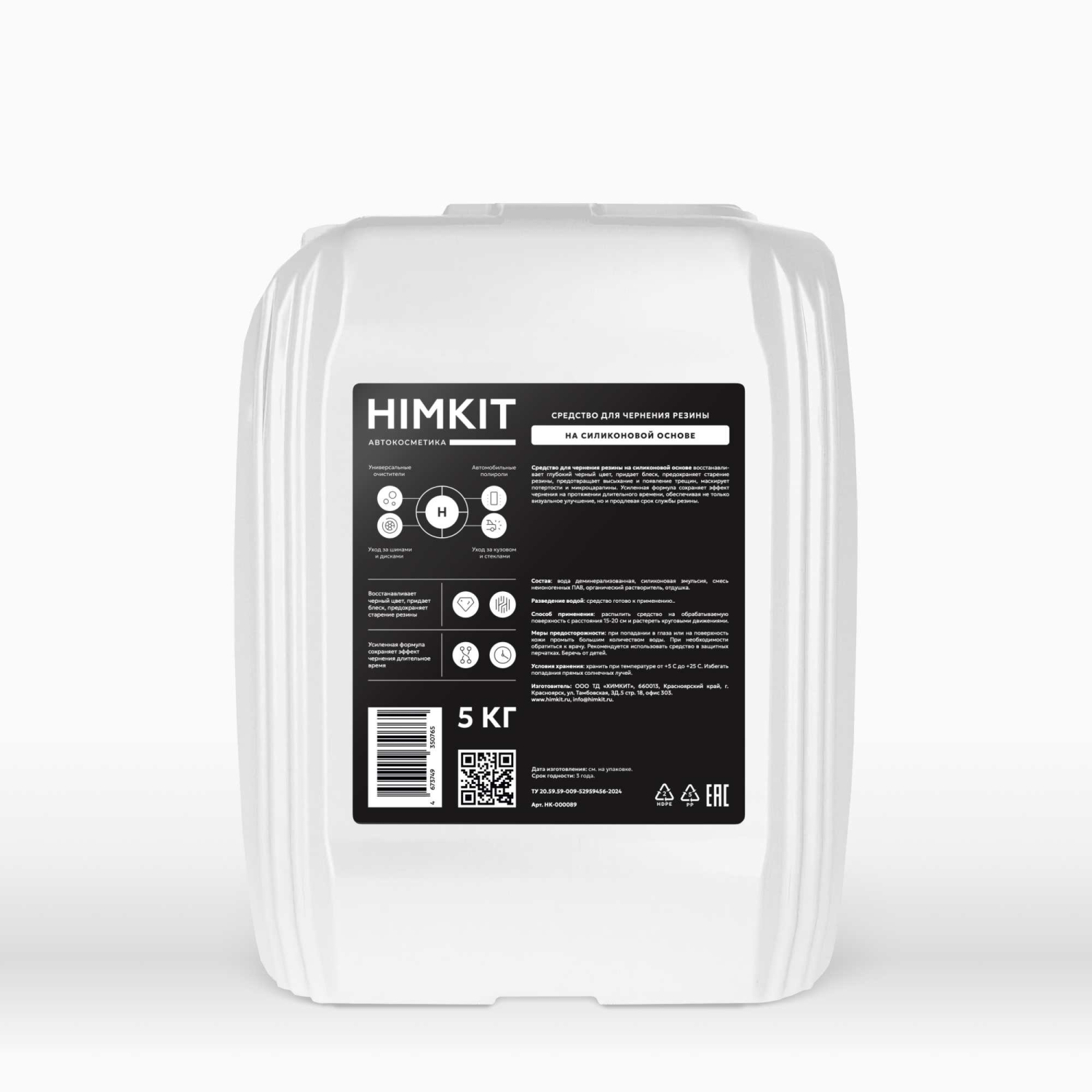 Средство для чернения резины на силиконовой основе «HimKit» — Средство для чернения резины восстанавливает глубокий черный цвет, придает блеск, предохраняет старение резины, предотвращает высыхание и появление трещин, маскирует потертости и микроцарапины. Усиленная формула сохраняет эффект чернения на протяжении длительного времени, обеспечивая не только визуальное улучшение, но и продлевая срок службы резины.