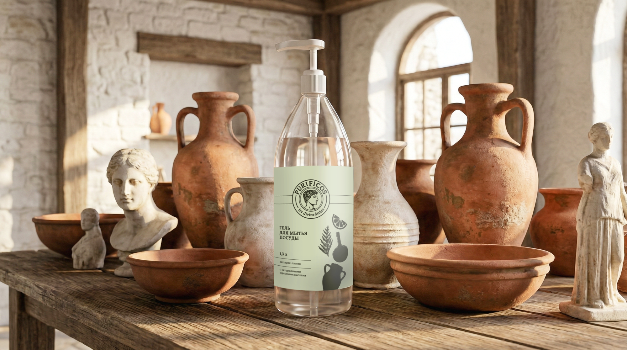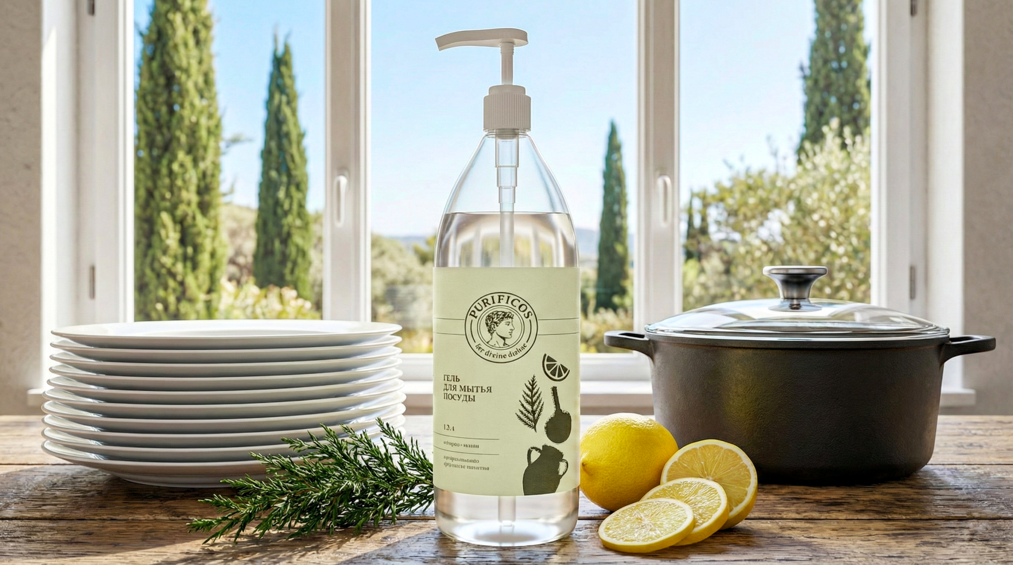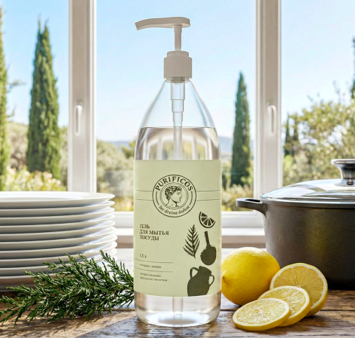 Средство для мытья посуды «PURIFICOS»  с ароматом кипарис-лимон 1,3 л						 — дополнительное изображение, арт. OZ 04 101